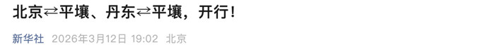 据中国国家铁路集团有限公司消息,自2026年3月12日起,中国北京、丹东至朝鲜平壤间双向开行国际旅客列车,进一步促进中朝两国人员往来、经贸合作和人文交流。北京与平壤间国际旅客列车每周一、三、四、六双向对开,丹东与平壤间国际旅客列车每日双向对开。